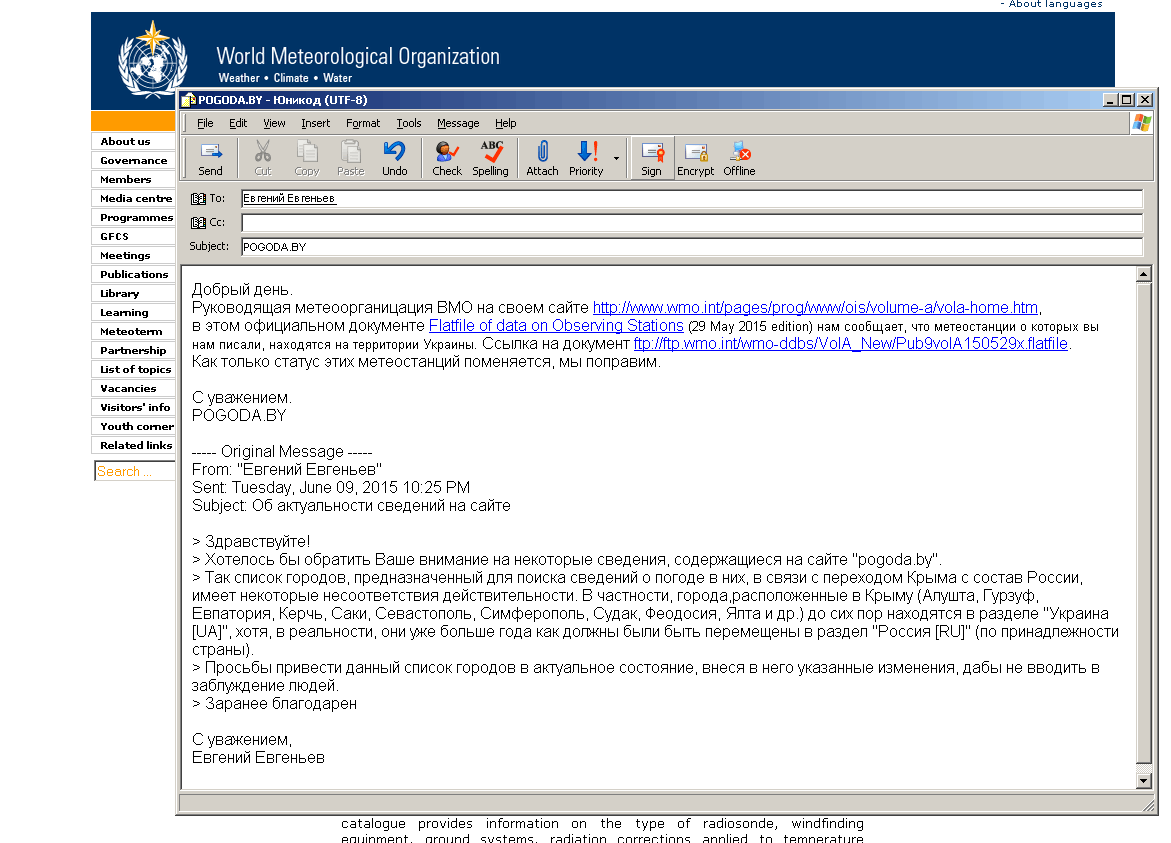 У свою чергу керівники сайту відправили "Євгена Євгеньєва", а заодно і всіх подібних скаржників до Всесвітньої метеорологічної організації, яка і визначає Крим як територію України, і попросили більше їх не турбувати.