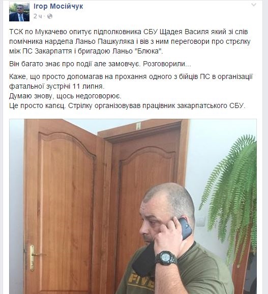 Кроме того, Мосийчук сообщил об опросе начальника УСБУ в Мукачево Анатолия Гурцика, который заявил, что силовики были в курсе готовящейся встречи.