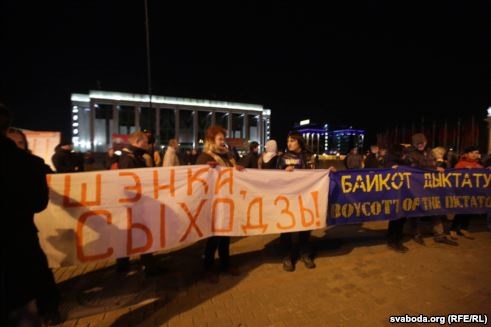 В центре Минска несколько десятков человек вышли на улицы, протестуя против результатов президентских выборов, на которых, по данным экзит-полов, победил нынешний глава страны Александр Лукашенко.