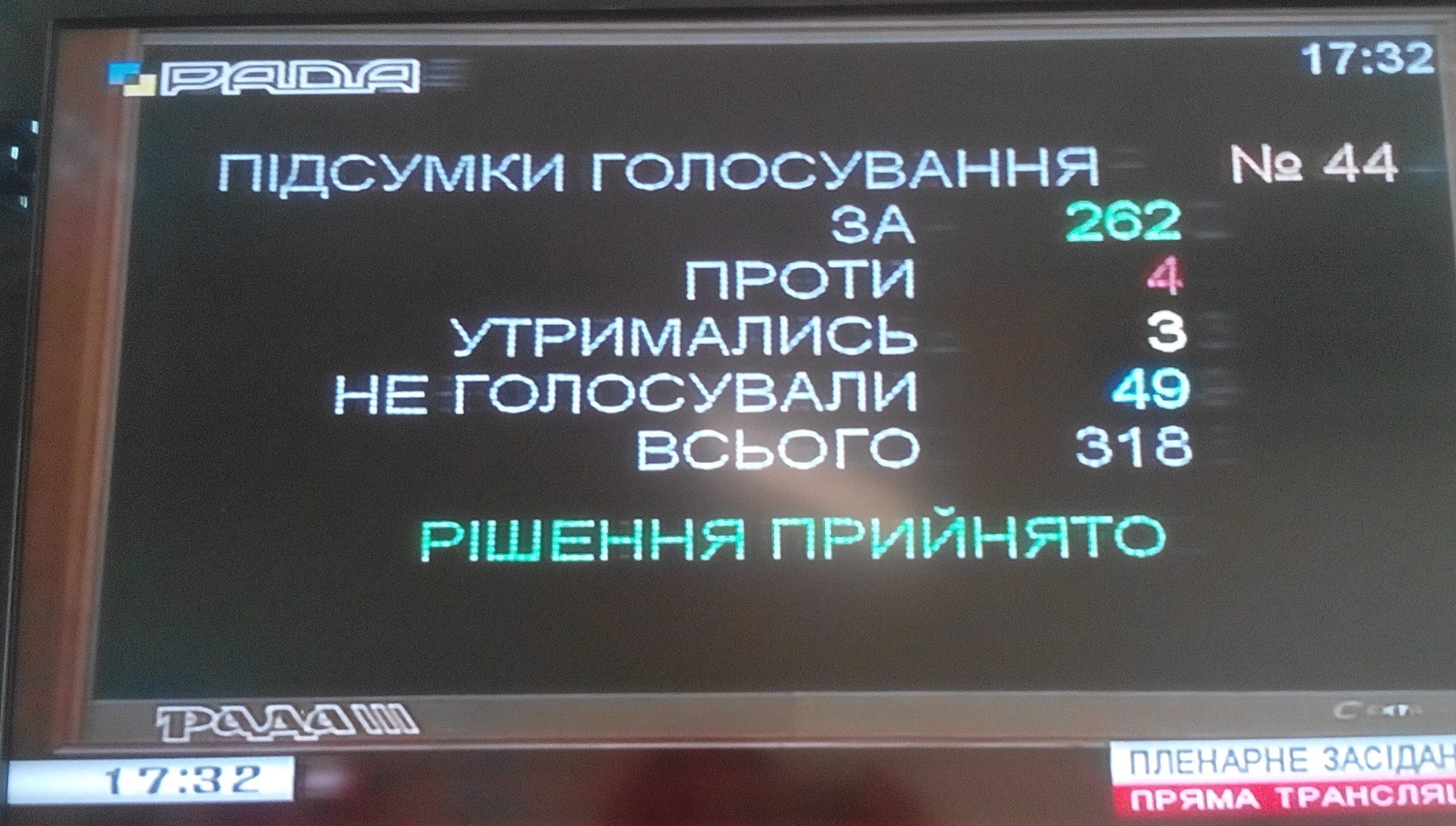 Верховная Рада поддержала это решение 262 голосами, после чего Владимир Гройсман закрыл заседание.