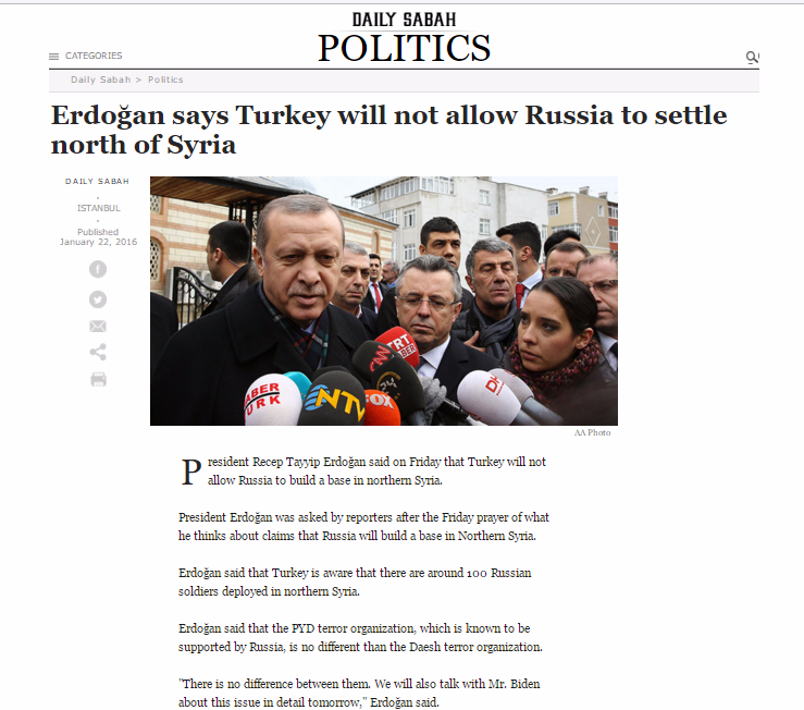 Эрдоган заявил, что террористическая организация PYD (сирийские курды, - ред.), которую, как известно, поддерживает Россия, не отличается от террористической организации ИГИЛ.